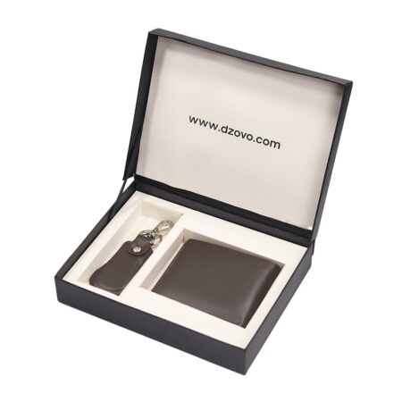 Dark brown leather 2-piece gift set with wallet and keychain – rich and elegant, ideal for gifting.
