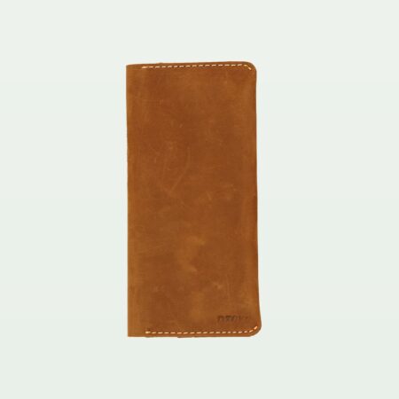 A classic brown leather long wallet with eight card holders, perfect for a versatile and elegant look.